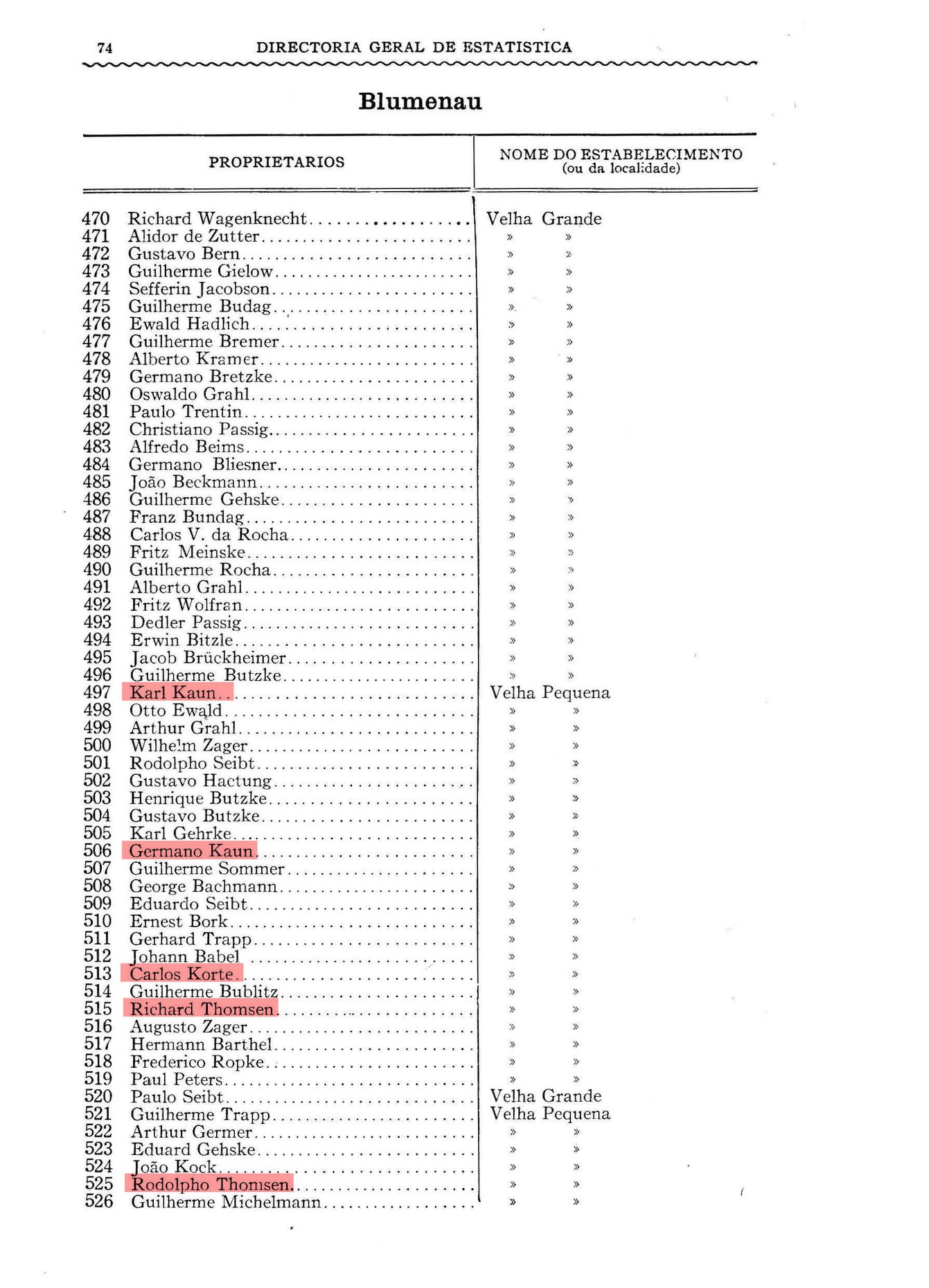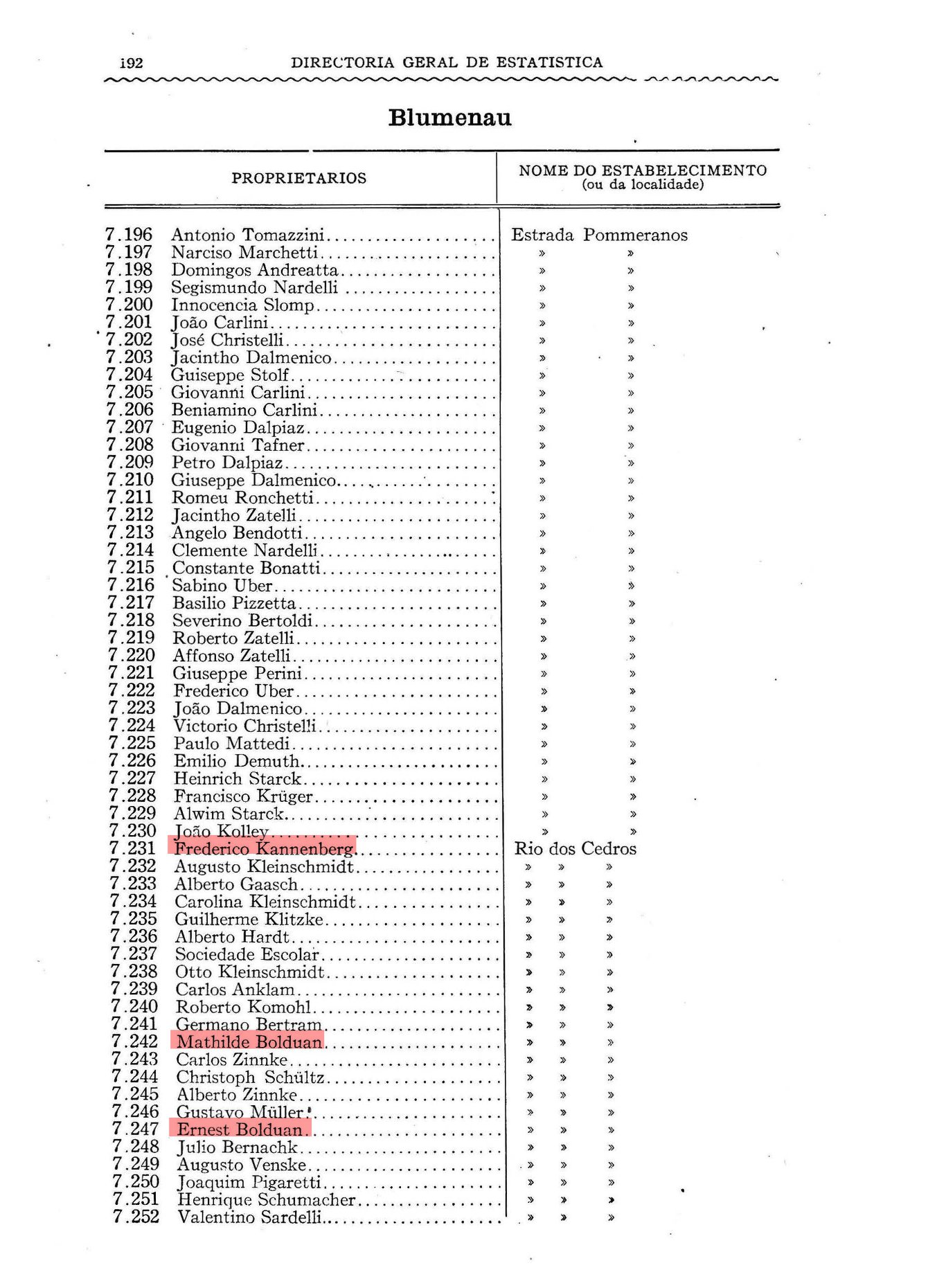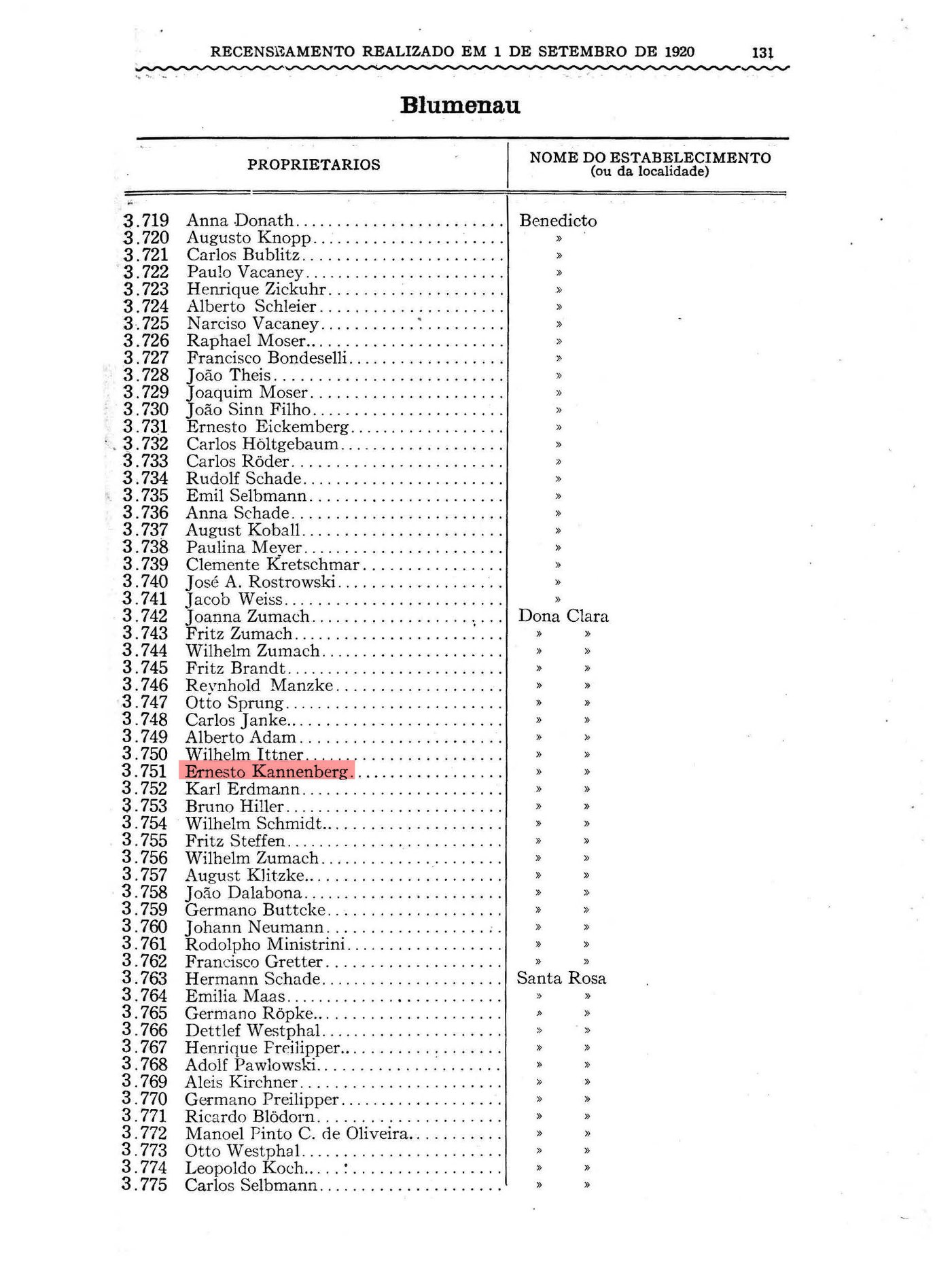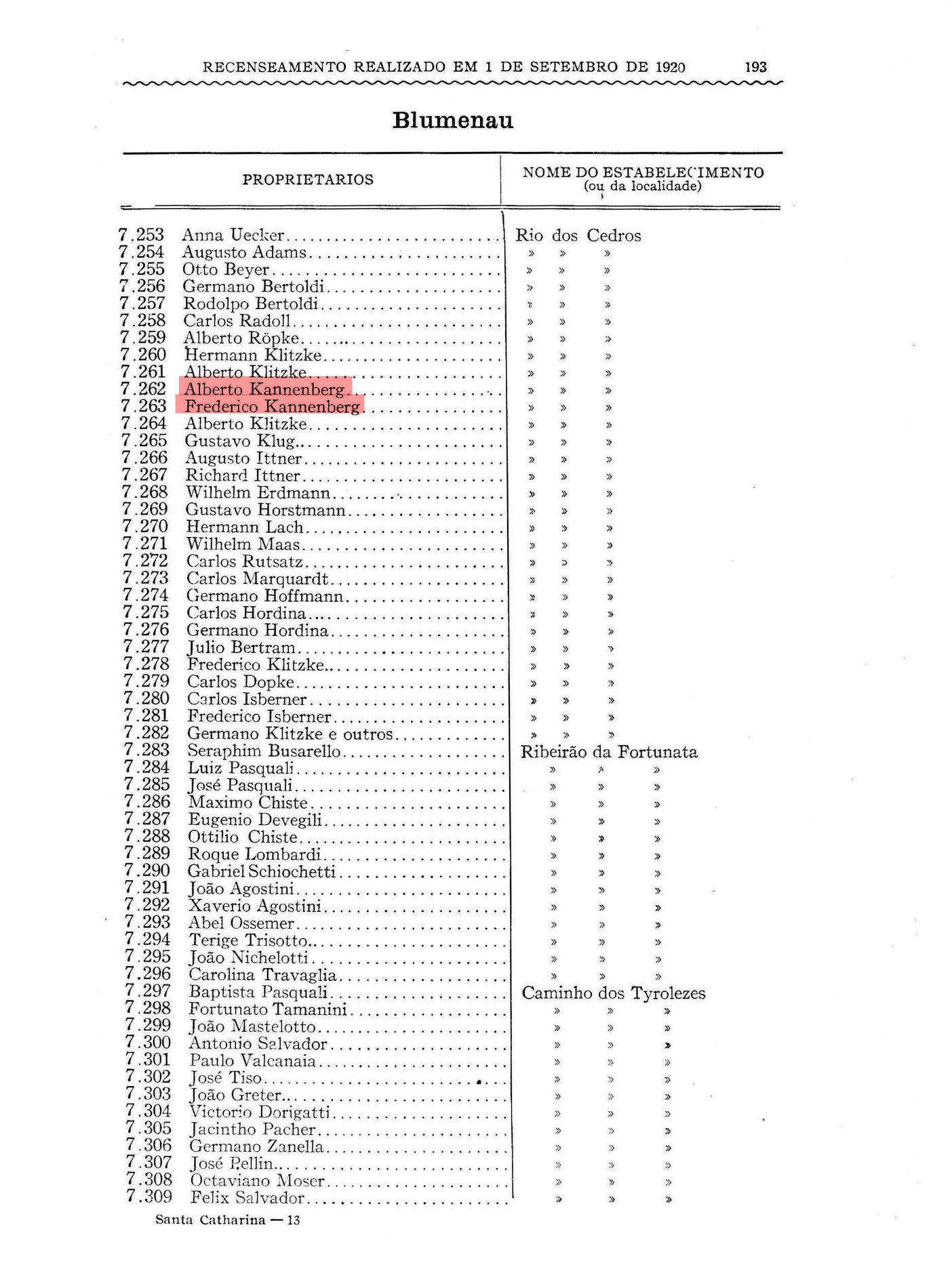 Alguns nomes/sobrenomes em destaque neste censo de 1920: